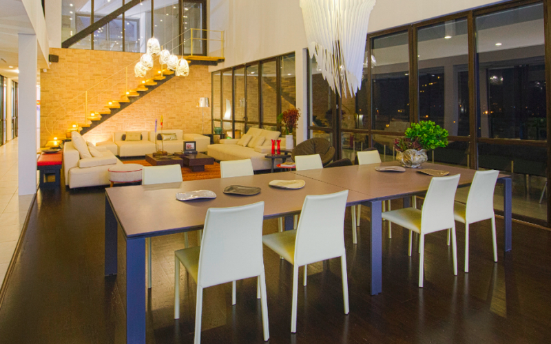 Está completamente domotizada, contando con sistemas inteligentes que controlan la iluminación, los electrodomésticos, el sonido, los extractores, las fuentes, la seguridad, el circuito cerrado de cámaras y la piscina. "Todo está orientado a la eficiencia energética. Por ejemplo, la iluminación es de tipo LED con 780 bombillos de color frío y calido, todos controlados por sensores de presencia. Además, cada ambiente tiene tabletas en las cuales se podrá programar el estado que desea: ecológico, normal, modo fiesta", asegura el ingeniero Parra.